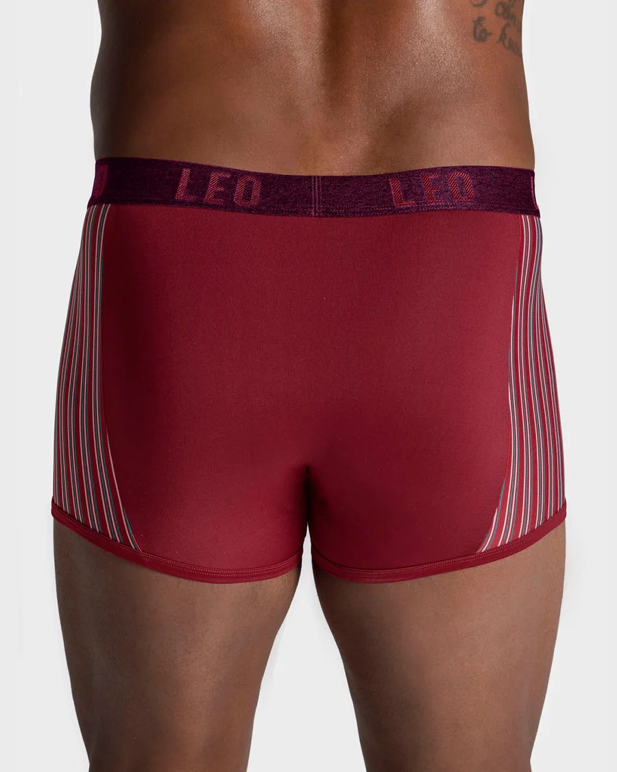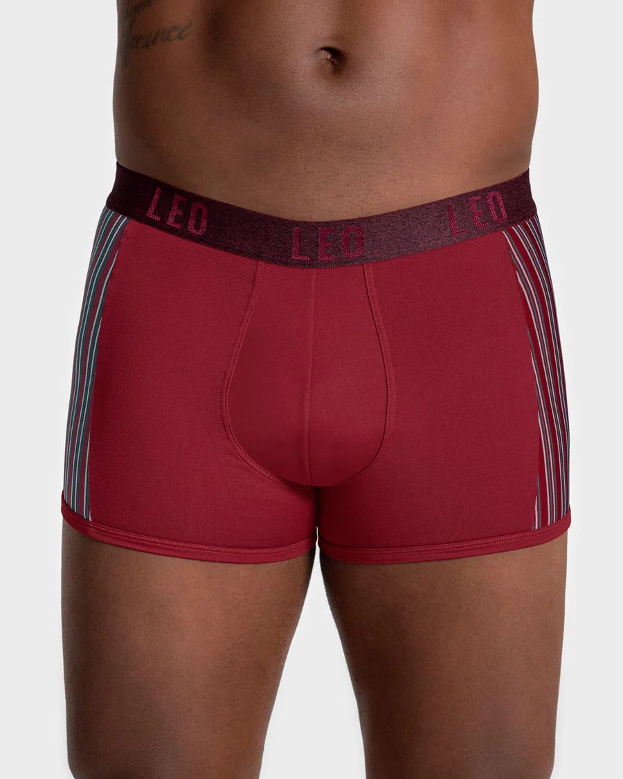 Bóxer corto con tecnología de ajuste perfecto es ideal para el uso diario ya que cuenta con elástico suave en la cintura que se ajusta perfectamente a tu cuerpo y te hará sentir muy cómodo durante el día. Su elástico en las piernas facilita un mejor ajuste. El contraste de color en los laterales le da un toque de diseño y su material es ligero y cómodo. Color: 174 Burdeos.