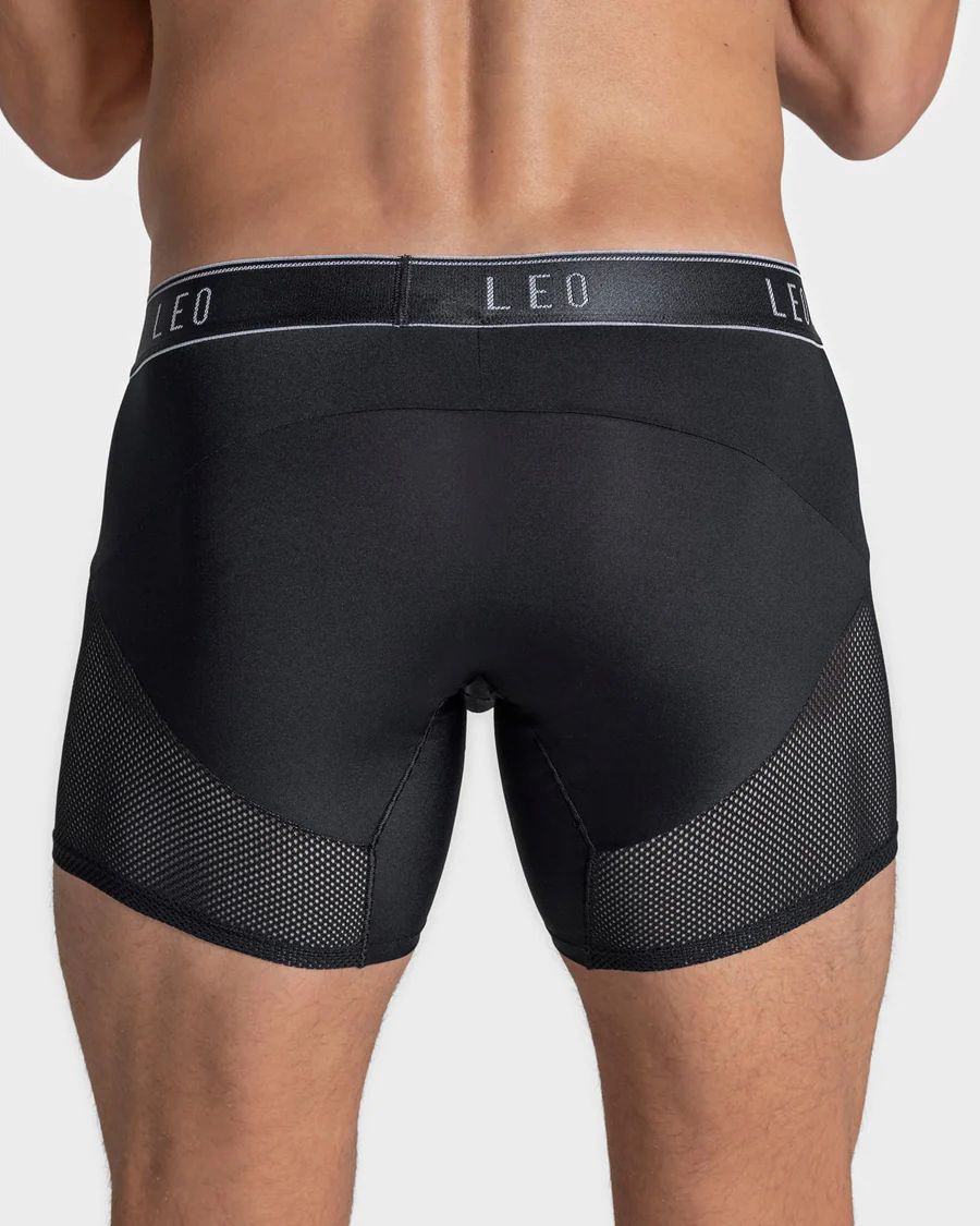 Bóxer largo que brinda toda la frescura que necesitas para el día a día o para tus entrenamientos. Cuenta con excelente soporte y ajuste en la parte delantera que te garantiza total comodidad; además al ser un bóxer medio, evita la fricción entre tus piernas. Está elaborado en DuraFit, un material suave, ligero y cómodo. Color: Negro.