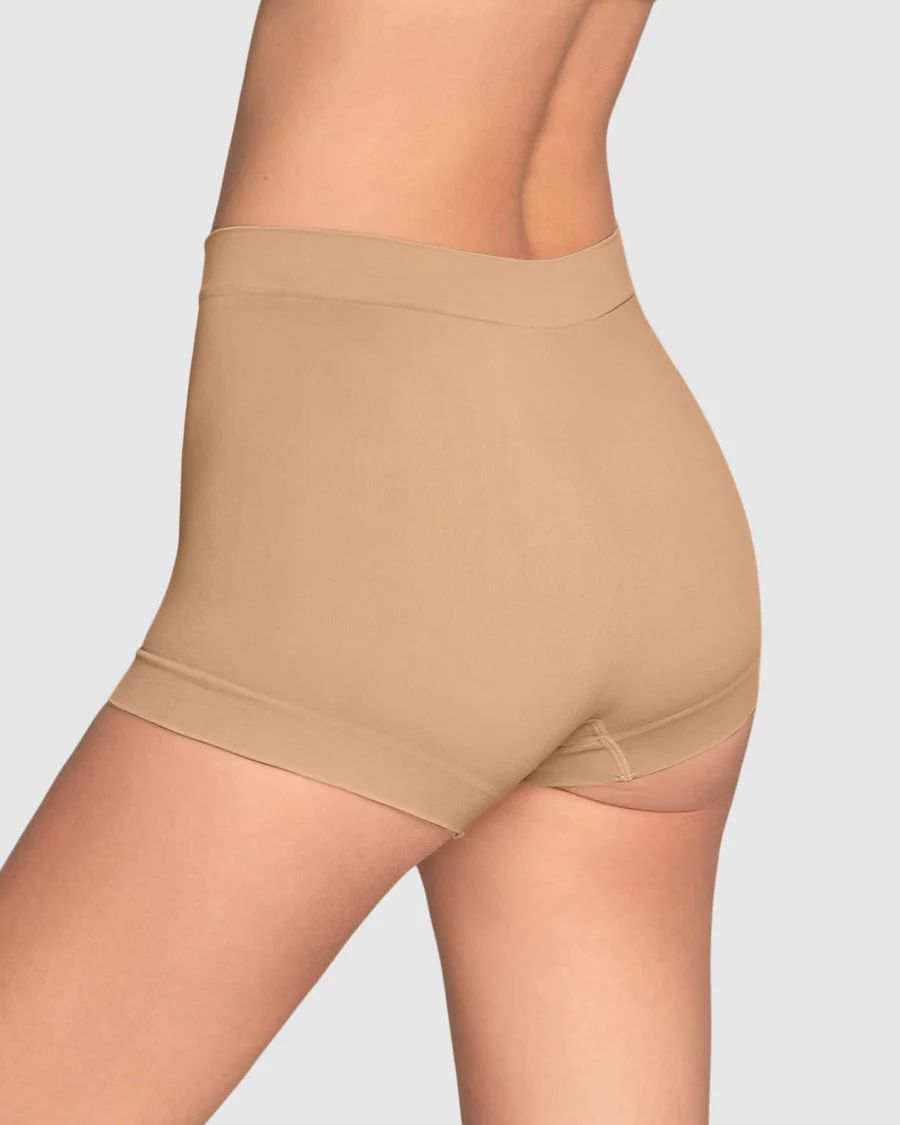 Siente la comodidad de llevar ropa interior tan suave que hasta olvidarás que la llevas puesta. Gracias a la tecnología seamless (sin costuras), este bóxer es perfecto para el día a día o para dormir, porque se siente como una segunda piel, y su buen ajuste te hace sentir segura y cómoda todo el tiempo. Tiene muy buen cubrimiento en el abdomen bajo y en los glúteos y su refuerzo inferior en algodón es suave y fresco. Color: Piel
